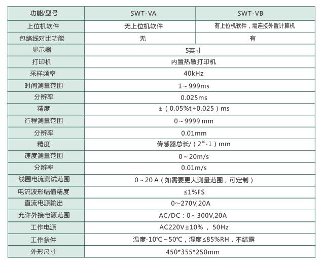 SWT-V系列开关机械特性测试仪在继承了我公司SWT-ⅢB的全部功能的基础上,增加了本机测试功能。仪器使用彩色液晶屏显示操作界面及测试结果,并配有打印机实时打印测试结果。该仪器可不通过上位机软件完成测试的全过程,仪器即适合出厂检测同时兼顾户外现场的测试功能,是目前国内开关厂家正在使用的主流产品。